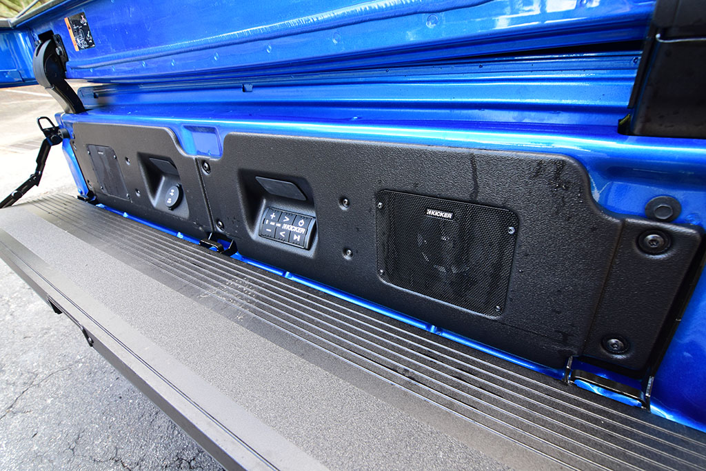 The creative and convenient MultiPro tailgate offers up a variety of opening tricks in addition to having built-in Kicker audio controls and speakers for “tailgating” adventures.