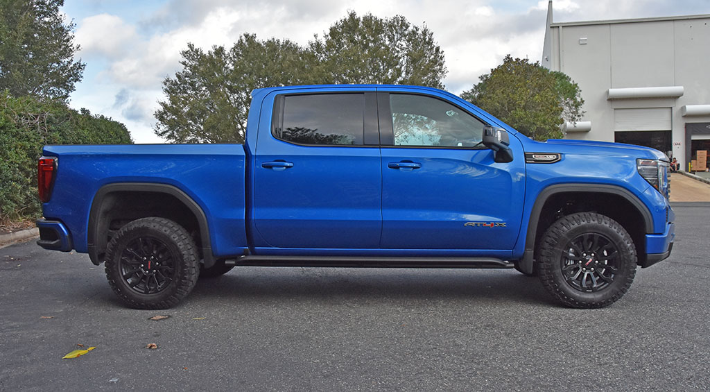 There’s a surprisingly easy feel about navigating the GMC Sierra 1500 AT4X despite it having the 33-inch (32.6-inch) off-roading tires wrapping the 18-inch wheels and 2-inch lifted suspension with the forgiving Multimatic DSSV shocks. Moreover, the narrower track of the Sierra 1500 AT4X over something like the Ford Raptor or even the RAM TRX benefits the Sierra in its ability to navigate certain terrain. The only disappointment remains with my GMC Sierra 1500 AT4X truck not having side steps but instead being equipped with dealer-installed rocker protection panel guards, which come in handy for those serious off-roading events to prevent body damage from larger rocks or obstacles. In my opinion, opting for the rocker guards would be for those who rarely transport family and find themselves hitting the off-roading trails more than most. Jumping into the Sierra AT4X is a challenge for some without sidesteps considering the 2-inch lift that seems a bit higher than indicated.