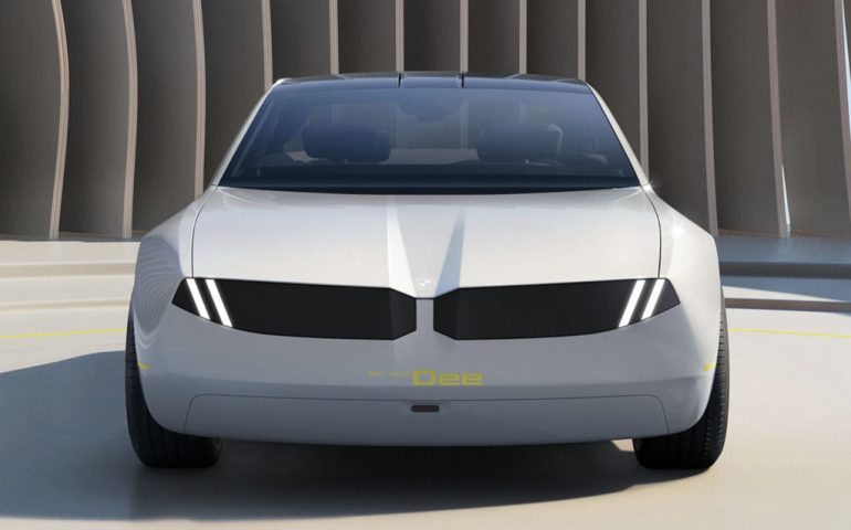 From a design perspective, Dee is quite fascinating, simple in nature, and reductive in physical features. Built with less complexity, she is presented with a nostalgic frontend from the 60s, utilizes no side mirrors, and sits wide and confident. The headlights and closed BMW kidney grille form a common phygital icon (fusion of physical and digital) on a uniform surface, which can change expressions using E Ink technology. The design team looked at classic BMW vehicles for references since familiarity and strong heritage build trust. Inside, the clean and flush cockpit is just as reductive as the exterior and commingles the BMW Mixed Reality Slider with the advanced Head-up Display (HUD) for the digital highlights and central operating controls. BMW says that using shy-tech sensors (touch) on the instrument panel allows the driver to determine the amount of digital content they want to see on the HUD. The systems feature four levels, from analog to augmented reality to an entirely virtual world.