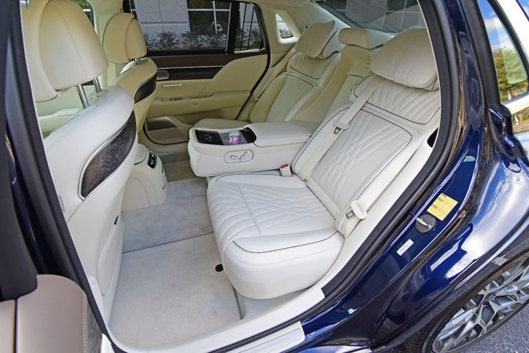 The G90 has four-wheel-steering, where it turns the rear wheels up to 4 degrees in the opposite direction at low speeds, which helps swing this rather long 125.2-inch wheelbase around to shorten the turning radius. Such a feature is essential for such a large sedan, one that nearly mimics the sensation of other long luxury sedans with rear-wheel steering. At highway speeds, the G90 feels like it’s gliding and puts its relaxed driving character at the forefront of how it behaves – everything is smoothly damped and eerily quiet in the cabin, as you expect in a large luxury sedan.