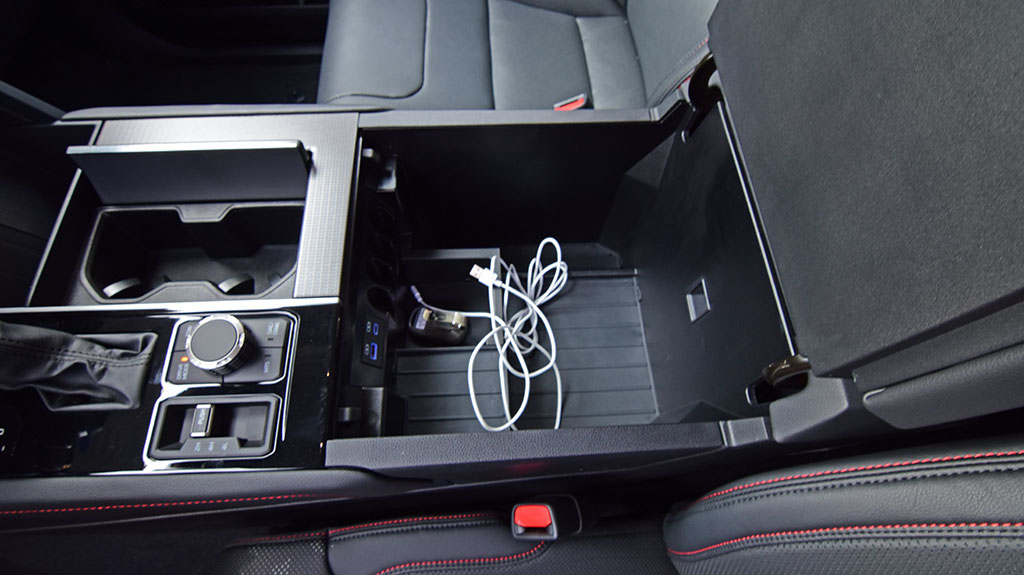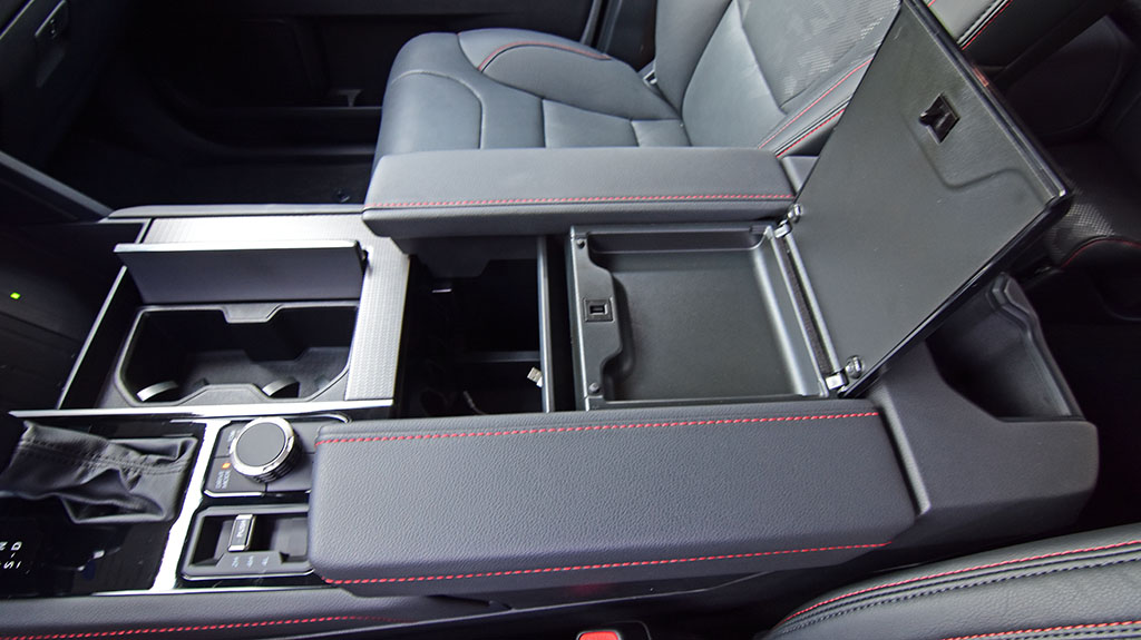 The new 2023 Toyota Sequoia elevates its sophistication naturally, but the overall feel inside remains to be contemporary with somewhat of an archaic feel, which I attribute to the tradition of Toyota keeping true to using proven equipment for its durability and reliability. Some of that feeling carries through the new digital gauge cluster that uses basic-looking graphics along with the toggle switches, knobs, and buttons, all having a rugged feeling. Where the tech feels more modernized is in the large 14-inch infotainment touchscreen, which has a simplistic approach to its operation with select core functions that take up the full screen. It’s here that I’ve explained that Toyota could have made better use of the large screen real estate with split screen functions, but you’re left with using one core function at a time, which isn’t all that bad in most cases.