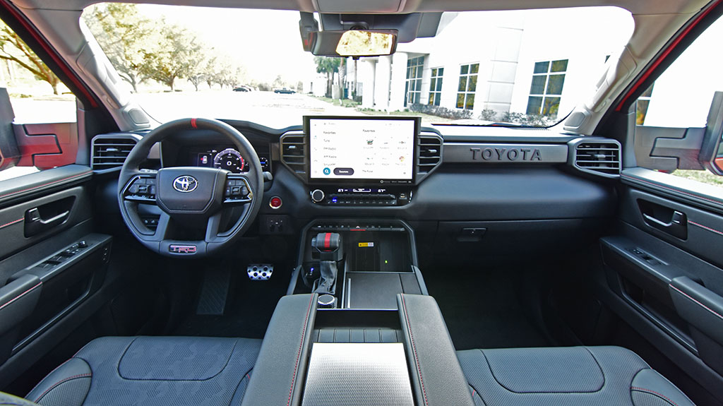 Toyota’s latest Safety Sense 2.5 suite includes all of the expected active safety features highlighting full-speed range dynamic radar cruise control, front pre-collision system with pedestrian detection, lane departure alert/keeping with steering assist, road sign assist, blind-spot warning with rear cross-traffic warning and emergency braking, and automatic high-beams that include an exceptionally bright TRD LED lightbar that can be set to come on with your high-beams.
