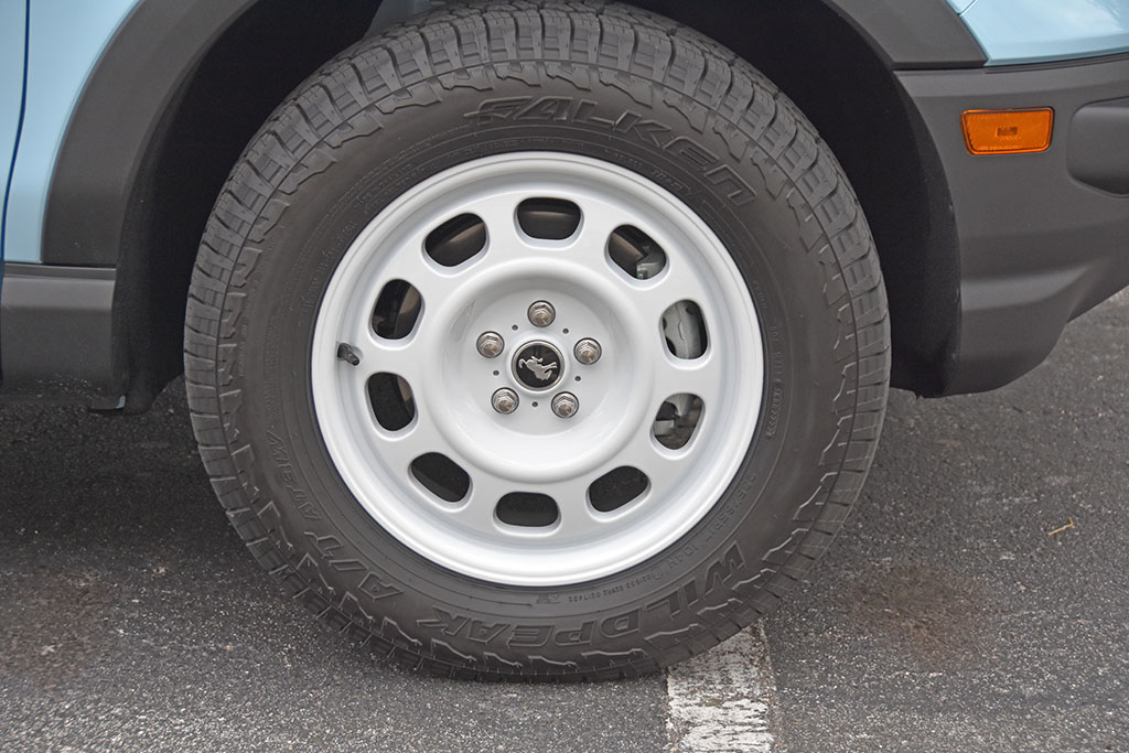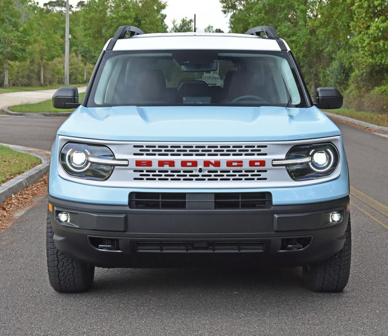 The classic Heritage theme pays homage to the original Bronco even though the Bronco Sport is more of a modest vehicle using the C2 unibody platform from the Ford Escape and Maverick pickup truck. What the Bronco Sport Heritage edition is sure to do is turn some heads instead of being on the side of the plebeian crossover that many think when they see a normal-colored Bronco Sport on the road. With a unique palette of bright colors offered, including my test vehicle’s Robin’s Egg Blue body paint accented by a Oxford White roof, white 17-inch wheel aluminum wheels, and red Bronco grille lettering, the Heritage edition is quite an attention seeker that won’t be mistaken for anything else, which can be a good thing.