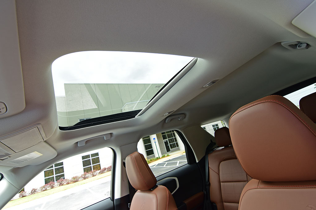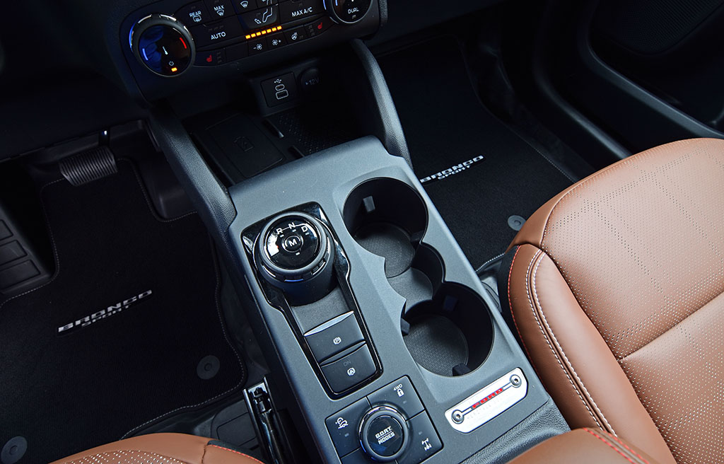 Up front, the Bronco Sport Heritage Limited uses some retro-inspiration with its white door inserts, perforated leather and vinyl-trimmed seats with plaid inserts, and a retro-styled plaque signifying the vehicle type on the center console. Otherwise, the interior is much of what you find in a loaded-up Bronco Sport Badlands trim featuring the 8-inch Sync 3 infotainment touchscreen that has Apple CarPlay and Android Auto integration. There is also a smartphone wireless charging pad conveniently located below the welcomed physical control knobs and buttons for dual-zone automatic climate controls. Below the touchscreen are welcomed physical knobs and buttons for the 10-speaker Bang & Olufsen audio system and disabling the start/stop system.