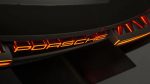 The rear of the Mission X concept embodies a contemporary aesthetic. A horizontal lattice structure supports slim, intricate LED taillights that enclose a floating, illuminated Porsche logo. During the charging process, the letter “E” pulsates in white, further highlighting the car’s electric nature.