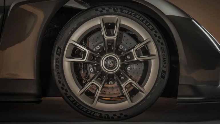 In terms of aerodynamics, while the GT3 RS achieves a maximum of 860 kilograms (1,896 pounds) of downforce through the use of a prominent wing and additional aero elements, the Mission X appears to conceal its chicanery beneath its undisturbed glasshouse and sleek upper surfaces.