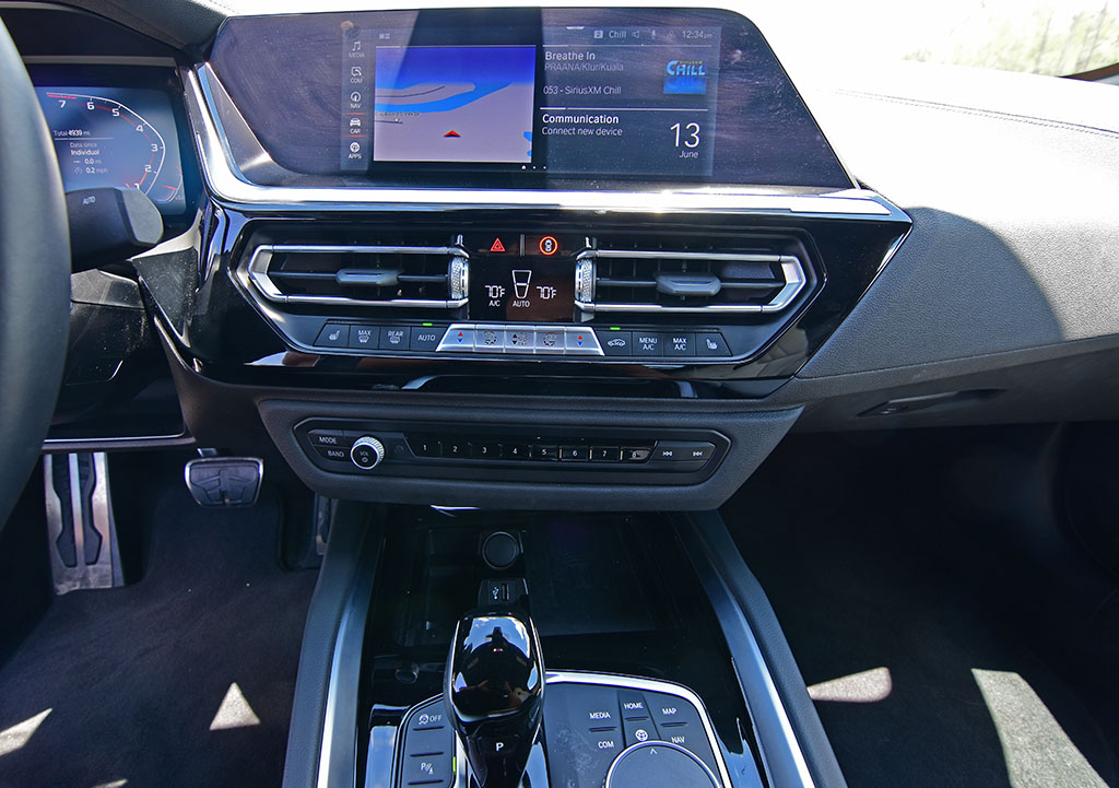 Inside the Z4, there’s a surprising amount of space where I feel right at home, being 6 feet 3 inches tall. In fact, I found myself moving the power driver’s seat forward a few inches from its farthest back adjustment. The heated seats seem to be on the hard side but provide just enough support for the performance level of the Z4 M40i, and having the 4-way power adjustable lumbar is a plus. I enjoy having the iDrive 7 system, which is a previous version from the current iDrive 8 found in newer redesigned BMW models. The system proves to have a short learning curve and has an excellent response time to your inputs through either the 10.25-inch touchscreen or the physical iDrive controller and buttons near the shifter.
