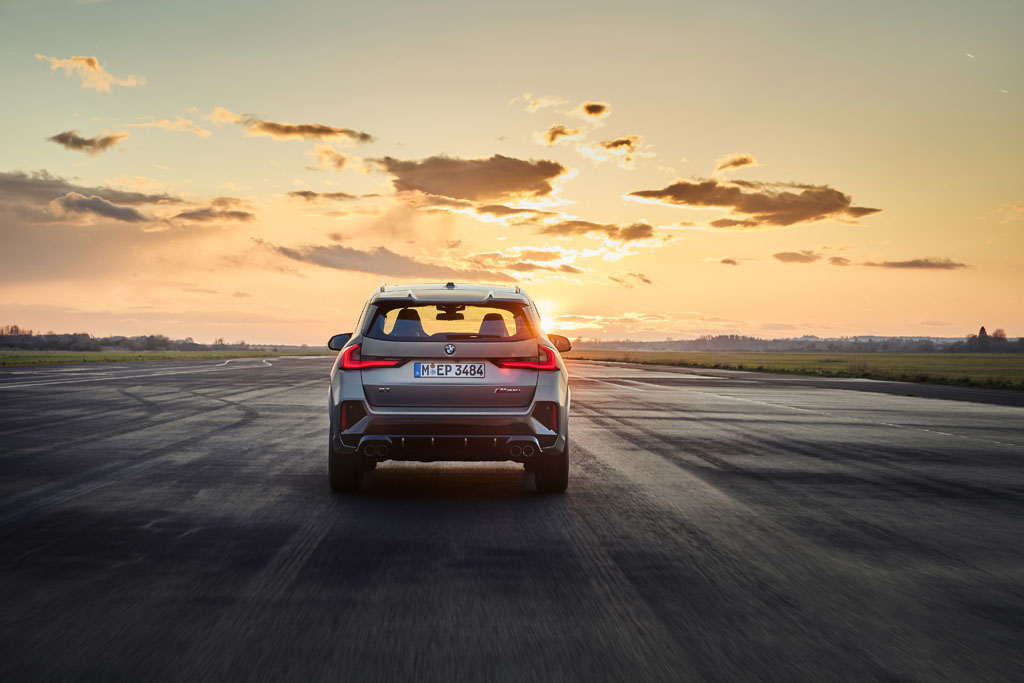 The exterior design of the range-topping X1 M35i perfectly matches its power and performance. Notable exterior features include enlarged air intakes on the front fascia, prominent side skirt extensions, a model-specific roof spoiler, and a rear apron incorporating a new diffuser with quad exhaust pipes.