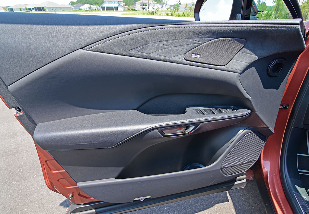 The Lexus RX 500h F Sport Performance embarks on a unique path for its powertrain, one that utilizes many decades of successful engineering in a hybrid powertrain. The RX 500h uses a 2.4-liter turbocharged 4-cylinder engine that’s good for 271 horsepower on its own but has the aid of two electric motors for a total system output of 366 horsepower and 406 lb-ft of torque. The system, as expected, works seamlessly, and thanks to a proven 6-speed automatic transmission, there’s more of a direct connection and feeling in the drivetrain to extract optimal performance from the drivetrain to the wheels. Where the front wheels have the connection of the engine and added power from a front electric motor with 86 horsepower, the rear eAxle gets an 80-kW motor with 102 horsepower to be the singular power source for the rear wheels but makes for an interesting and welcoming power spread. Using all of the power sources available at full bay gives you enough grunt to get the RX 500h F Sport up to 60 mph in just 5.9 seconds. Yes, that means this is the quickest RX ever. Bringing things to a stop is just as inspiring, with an assured brake pedal feeling that has excellent transitions from the braking regen to the friction brakes, which are massive in size and are even up to the task of light track duties.