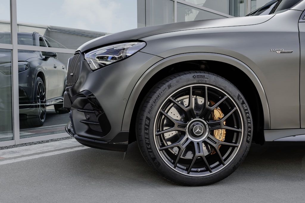 Inside, the GLC43 and GLC63 are enhanced with an improved interior, featuring MB-tex and microfiber cabin as standard, while the option for full Nappa leather with embossed AMG logos on the front headrests adds luxury. For a sportier touch, buyers can choose the Performance seats. The MBUX system, carried over from the base GLC, now includes AMG-specific features. Special AMG graphics are integrated into the instrument cluster, central display, and optional head-up display. Additionally, the infotainment system incorporates AMG Track Pace for data logging, perfect for those who wish to take these SUVs to the track.