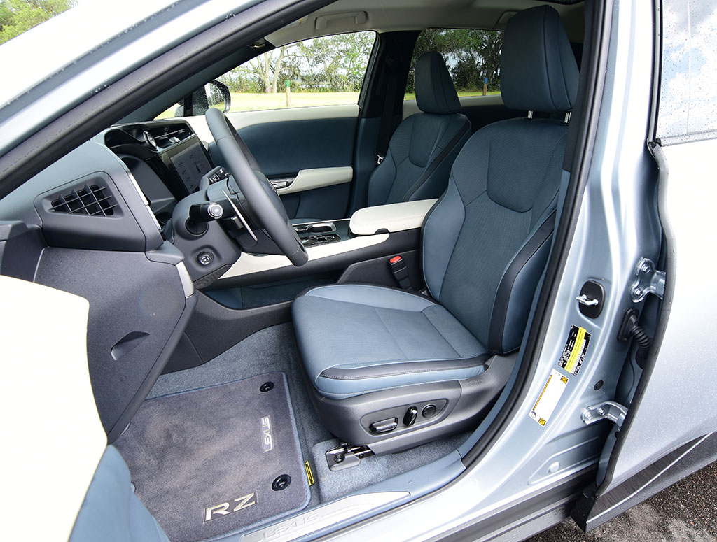 In the area of safety, the Lexus RZ 450e keeps with the tradition of offering up a full array of all the expected active safety features, which include the highlights of adaptive cruise control, forward collision warning/emergency braking, lane centering/lane tracing, blind-spot warning, rear cross-traffic warning, front cross-traffic warning, semi-automated parking system, traffic sign reading, safe exit assist, and a nifty surround-view 360-degree camera system.