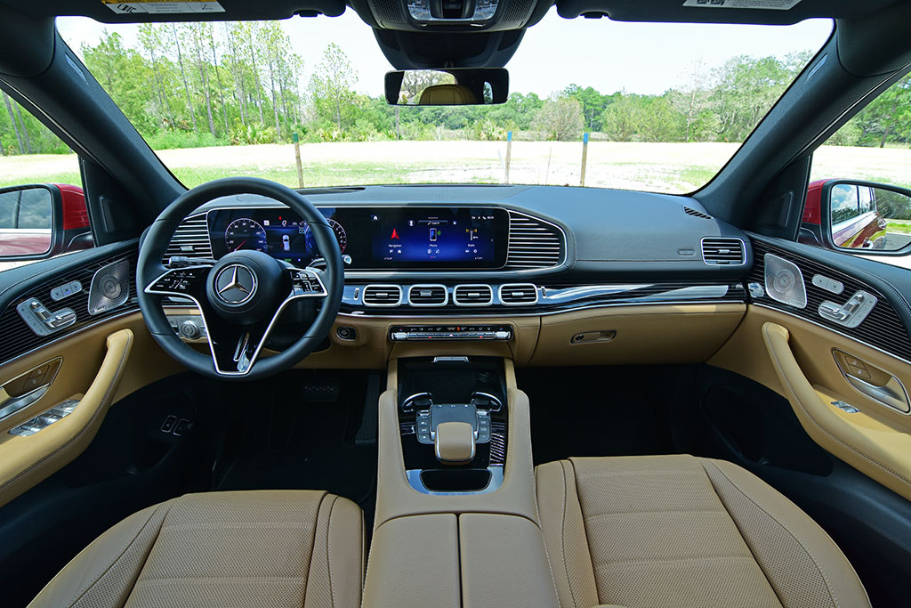 Out on the road, the GLE 450e behaves much like its GLE 450 trim sibling, and there’s a welcomed effortless transition of the PHEV powertrain switching from the use of the electric motor to having the gas engine step in for added power when needed. The system is smooth, and the substantial instant torque from the electric motor allows things to get moving from a stop in a hurry where the gas engine is hardly needed until you need to reach highway speeds. However, using the electric motor alone in the EV mode that the system defaults upon startup to when there is a battery charge above zero percent feels more substantial than other luxury PHEV SUVs that I’ve driven. The Benz GLE 450e seems to have more of a kick from its electric motor combined with using the 9-speed automatic transmission’s gearing to limit or avoid the use of the gas engine. It’s an interesting feeling and one that easily reaches highway speeds when you’re not on an incline. Put the GLE 450e in a climb, and the gas engine usually fires up for needed acceleration. Otherwise, the EV mode retains the sole use of the electric motor if you don’t depress the gas pedal into the kick-down notch. When both the engine and motor are working at their peak demanding full throttle you’ll expect to hit 60 mph from a standstill in 5.8 seconds.