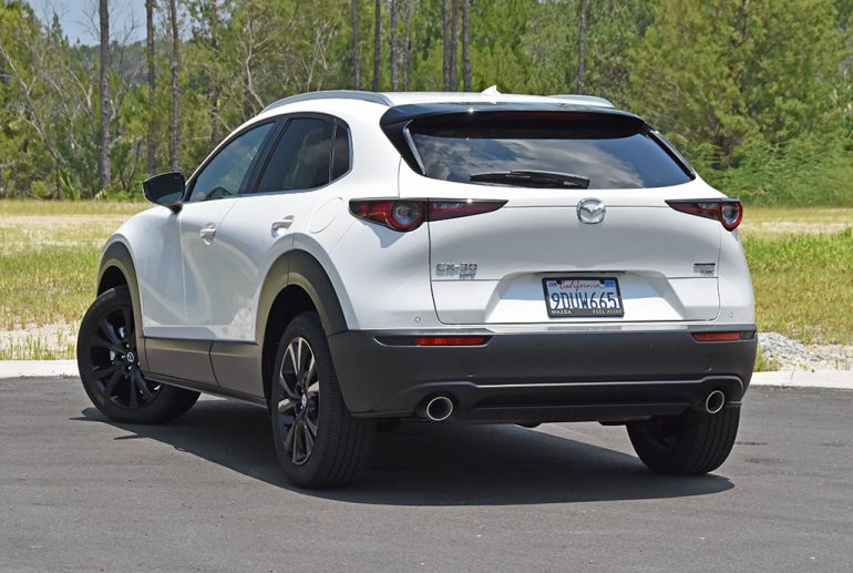 Mazda keeps things quite competitive in the pricing arena, and the value is added in its proven and powerful powertrain setups, premium interior appointments, and sporty-confident-inspiring driving character. The new CX-30 starts at just $22,950 for the base trim and less-powerful engine but offers just the right amount of equipment, including the full array of active safety features minus the blind-spot monitoring with rear-cross traffic alert. Each trim level has a set features list with only a couple of stand-alone options available. With that, my nicely equipped CX-30 2.5 Turbo Premium Plus test vehicle comes to a price of $37,170.