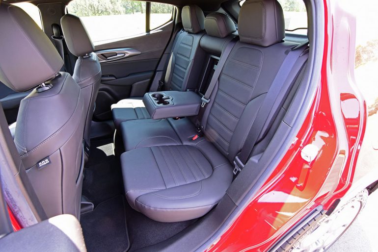 The seating areas are decently sized and accommodating for most, except for the heated and ventilated seats up front don’t feel very supportive from the bubbly bolstering. There’s a good range of adjustment up front, and the rear seating area has a good amount of space with good legroom, provided you’re not too much over 6 feet tall. The accented stitching and bright trim work attempt to accentuate a welcomed flare, but those elements tend to get a bit lost in the otherwise dark interior.