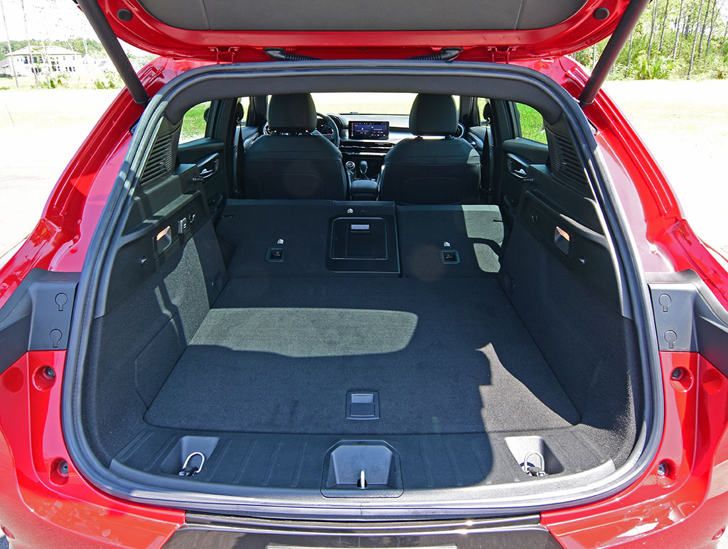 The cargo room is on par for such a class of a crossover having 23 cubic feet behind the rear seats. Fold down the manual 60/40-split seatbacks, and you have 51 cubic feet of space, all accessed through a power liftgate.