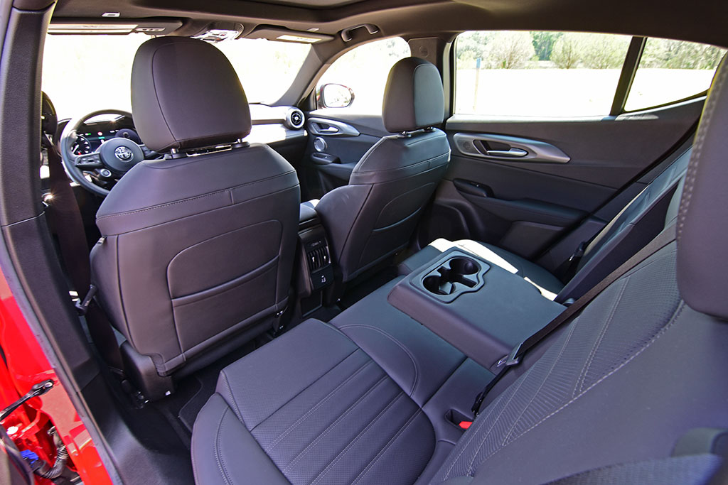 The interior of the Alfa Romeo Tonale fits the mold of what you find in the Dodge Hornet, but there are some characteristics that set it apart, such as the climate vents and the upper soft-touch dashboard areas. Otherwise, there are a lot of similarities. The 12.3-inch digital gauge cluster is nicely customizable and can slightly mimic a vintage style of dials, in addition to displaying the navigation map in the center.