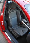 Interior changes include a redesigned steering wheel, new center stack, and a variable red zone on the tachometer. The extremely low cabin floor allows the seats to be mounted low in the chassis, which, along with a low instrument cluster and hood, enhance driver visibility. The new R3 adds Recaro sport seats with leather side bolsters, leather-wrapped steering wheel, shift knob and parking brake. The red stitching gives the interior a more luxury feel. Also new is the aluminum foot pedals and 300-watt, Bose Audio system with Centerpoint surround sound, 9-speakers, AudioPilot noise compensation technology, and a Bluetooth hands-free phone system. Standard equipment includes dual power mirrors, A/C, auxiliary audio output, power windows express up/down, power door locks, Mazda advanced keyless entry, upper center console with readouts for outside temperature, clock, and climate control functions, tilting steering wheel, (I would like to have seen a telescope feature to bring the steering wheel closer to my hands), steering wheel audio and cruise-control buttons, flow-through center console with dual-cup holders and storage bins front and rear, flip-up ash tray, overhead console with dual map lamps and sunglass storage, rear window defogger, aluminum scuff plates, black with aluminum accents, signature RX-8 floor mats, black piano veneer and aluminum tone trim throughout.