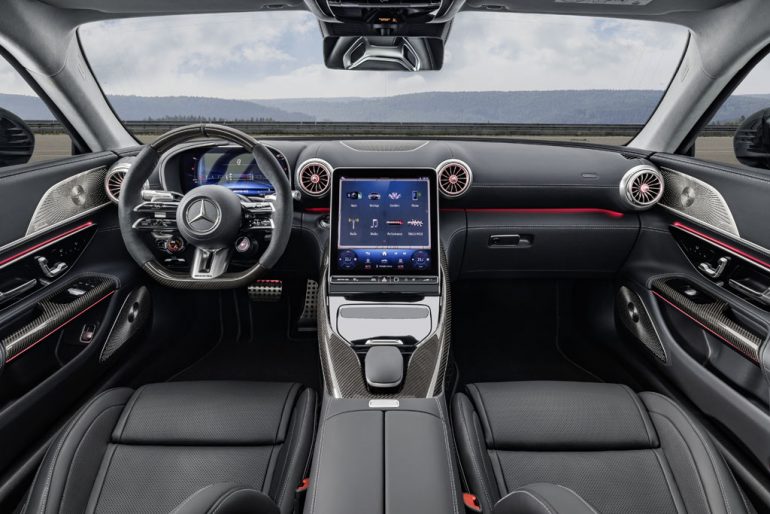 Despite its evolved appearance, the redesigned GT retains its unmistakable identity. It proudly features Mercedes’ Digital Light headlights as standard equipment, accentuated by signature LED light dots serving as running lights. At the rear, an active spoiler, paired with LED taillights sporting a three-dimensional aesthetic, makes its presence felt.