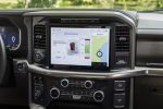 In the realm of technology, the 2024 F-150 introduces an optional heads-up display for the first time. All trim levels now feature digital interfaces, with standard 12-inch driver and center touchscreens. LED headlights are also standard, and Ford has equipped the F-150 with an impressive array of 10 driver-assist systems. The operating system is Sync 4, and BlueCruise version 1.2 is available, offering hands-free lane change and enhanced lane-keep functionality. The exterior cameras can now display two views simultaneously on the center screen, depending on the selected drive mode.