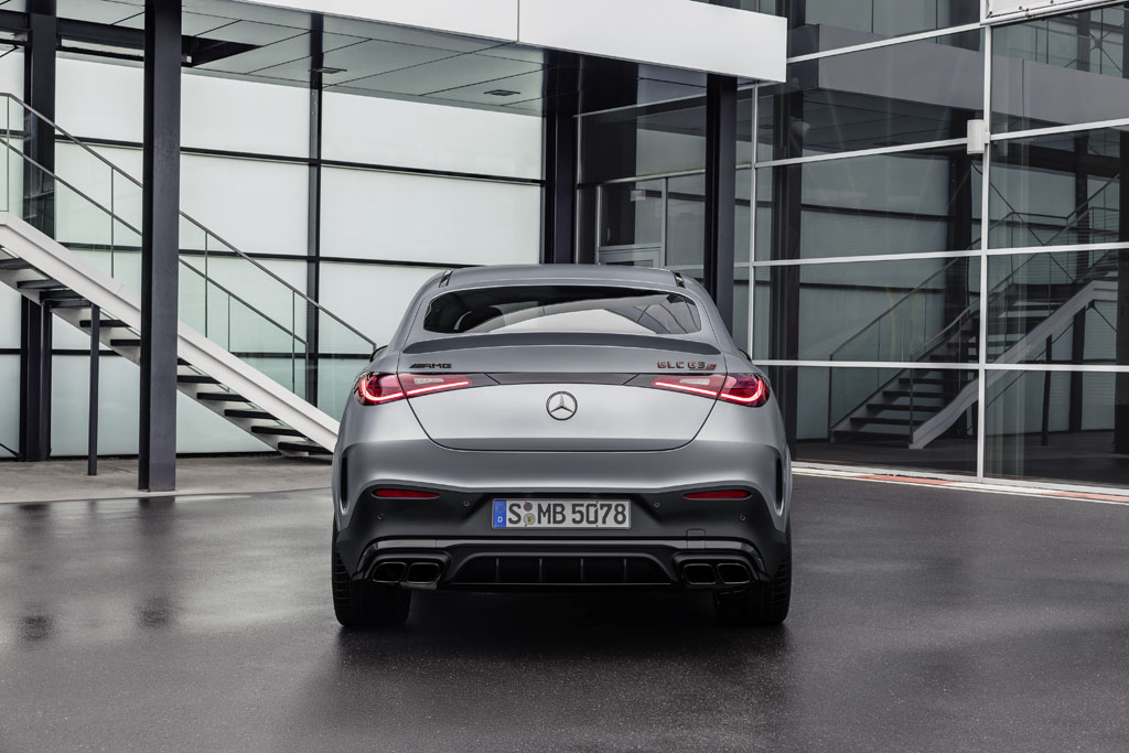 The rear of the GLC Coupe is equally eye-catching, with two-piece taillights and an AMG-specific diffuser-look rear fascia (GLC 43) or an additional diffuser board (GLC 63 S E PERFORMANCE). The twin tailpipe trims, round for the GLC 43 and trapezoidal for the GLC 63 S E PERFORMANCE, further emphasize the vehicle’s power and aesthetic appeal.