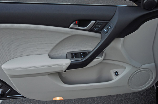 For 2010, all TSX models receive an easier-to-read navigation screen when equipped with the Technology Package.  It is recessed so that there is no sun glare making it hard to read the screen.  Also there is an improved look of telephone number text displayed on the Multi-Information Display.  I also liked the new instrument cluster with the mechanical looking gauges and floating orange needles.  All buttons, switches and dials are within easy reach and fully illuminated for safe nighttime travel.  The sporty, 3-spoke leather wrapped, tilt/telescoping steering wheel felt perfect in my hands.