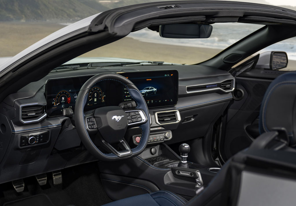 Ford has gone the extra mile in incorporating the California Special theme throughout the vehicle. The 5.0-liter and GT badging are now outlined in blue with black centers, reinforcing the California Special’s distinctive look. This design philosophy extends to the GT/CS badging for the Performance Pack, ensuring consistency in the overall appearance.