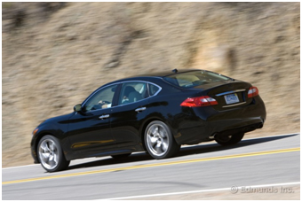 The M’s we were driving at the time of this test were still in the development stage. We have been notified that the personality of production versions of the 2011 Infiniti M56 will be enhanced through revisions to the throttle and transmission calibrations, and that they’re taking another pass at its exhaust note.