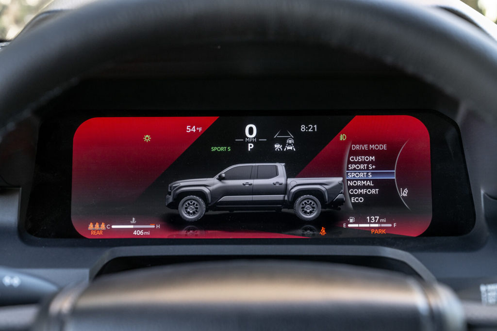 Inside the cabin, the Tacoma offers a new 8.0-inch touchscreen or an optional 14.0-inch display. The SR and SR5 models feature a standard 7.0-inch digital cluster, while all other models come with a 12.3-inch cluster. Regardless of size, the infotainment system incorporates Toyota’s latest technology, featuring wireless Apple CarPlay and Android Auto.