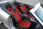 This convertible model is something very special and unique. With just a push of the chrome-tipped toggle switch on the center console the stunning red cloth top raises or lowers in just 15sec., the fastest of any convertible in the segment, and it is also as quiet as the coupe because of Audi’s outstanding acoustic sound-insulating technology. After driving seven days behind the wheel with the top up, it does block out much of the outside noise.