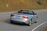The Audi signature dynamic five link independent front suspension and multi-link rear suspension is slightly less sport-tuned than the S5 coupe because of the heavier weight of the convertible top, but it handles just fine getting around slower city traffic or on the open road. Put the 7-speed automatic in S (sport) mode and the suspension tightens, the gear changes come faster and the Servotronic speed sensitive steering reaction quickens to your inputs. The Quattro AWD system has also been enhanced with the new rear torque bias. It is fantastic! You are truly riding on rails as the S5 convertible just sticks like glue on the pavement.
