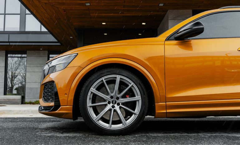 My Dragon Orange Metallic Audi drove around town garnering significant attention from its vibrant paint to its aggressive features such as an RS-specific honeycomb grille, RS model spoiler, 23″ Audi Sport 5-Y-spoke rotor design rims, a specialized front spoiler, RS-specific side blades, RS model oval exhaust outlets, black Audi rings, a prominent rear diffuser, and much more. Also, HD Matrix-LED laser headlights help dominate the front fascia and strong character lines and flared wheel arches offer a grounded stance. Furthermore, our Black Optic package attracted ancillary attention from admirers of German engineering.