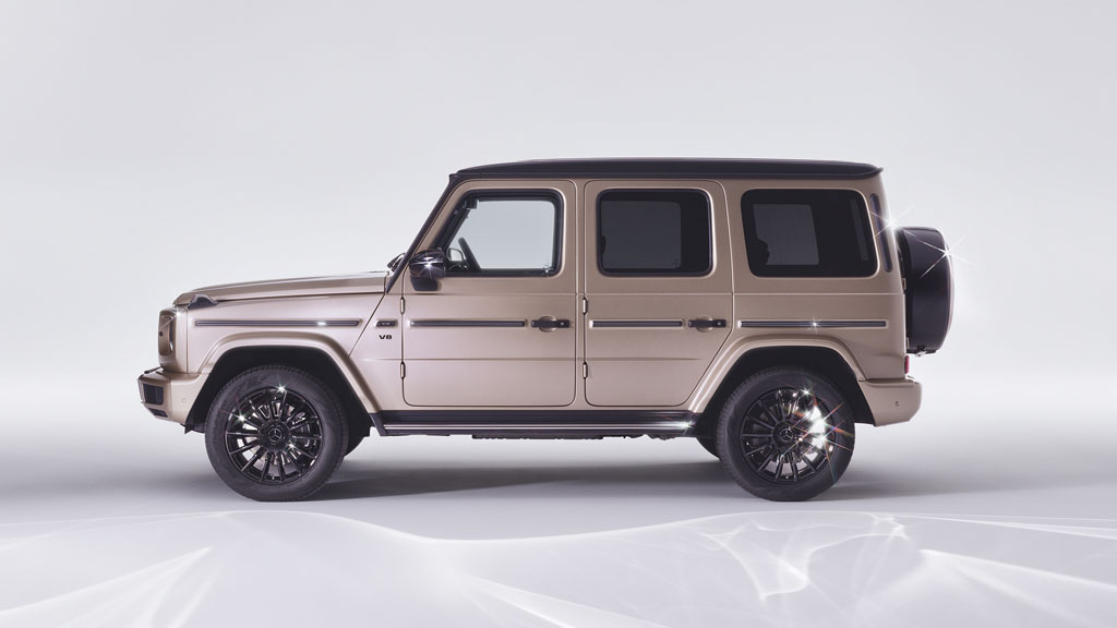 The “G-Class Stronger Than Diamonds Edition” from Mercedes-Benz sounds like a truly opulent offering just in time for Valentine’s Day today. It’s fascinating how they’ve incorporated the symbolism of diamonds into the design and branding of the vehicle. The attention to detail, from the diamond-set door lock pins to the embossed diamond logos on the handles, demonstrates a commitment to luxury and exclusivity as Benz probably sets out to have one last hurrah of fun until such a vehicle gets electrified in the near future.