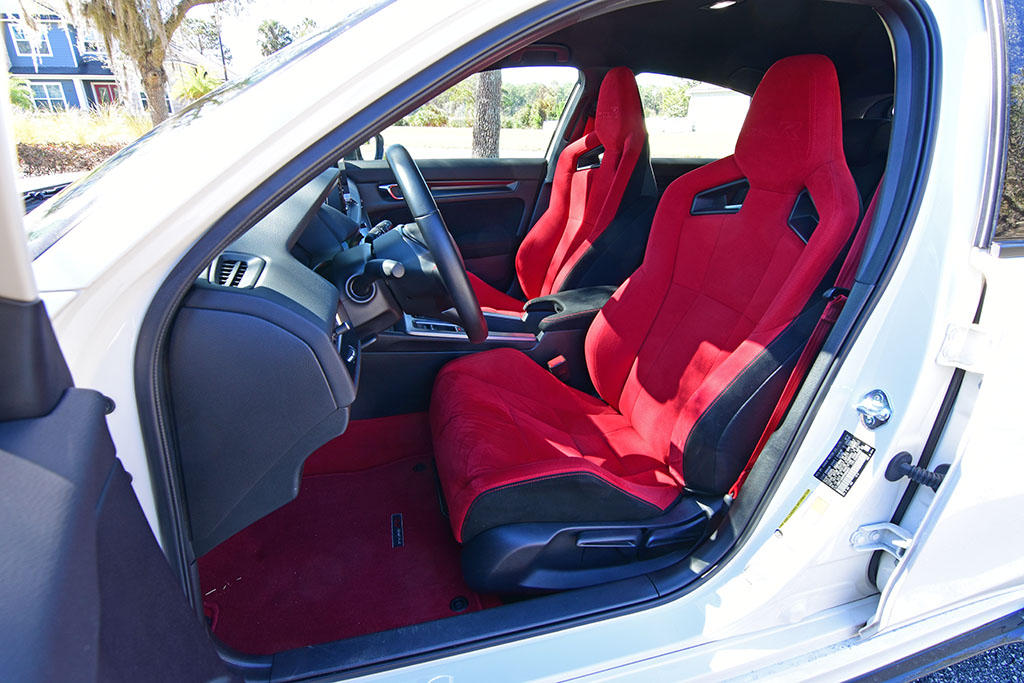 I can’t help but compare the Civic Type R and Integra Type S, but there are some slight differences, starting with how the Civic Type R feels more raw and rough around the edges. With that, the Civic Type R seems to have more sound sent through the cabin as you rev the engine to 7,000 rpm. The ride quality is certainly stiffer in the Civic Type R, and it almost feels like you can toss the Type R around with a bit more confidence, even if it is marginal. Otherwise, you have the obvious differences in styling and seating.