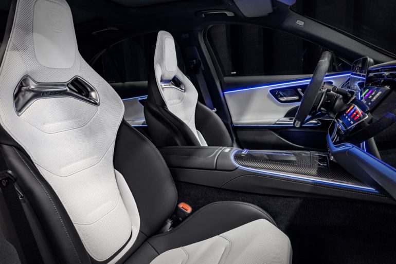 Driving dynamics are further enhanced by the AMG Performance 4MATIC+ all-wheel drive system, AMG RIDE CONTROL suspension with adaptive damping, and active rear-axle steering. The AMG high-performance brake system ensures precise braking performance, complemented by an electromechanical brake booster for seamless integration of electric recuperation.