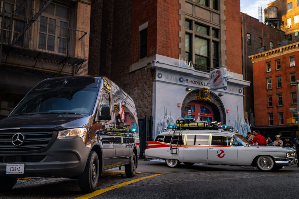 As the film’s release date approaches, excitement is building both on and off-screen. The Hook & Ladder Company 8 building serves as a focal point for fan engagement, offering them the chance to get up close and personal with the ECTO-1 and ECTO-Z vehicles before they hit the streets in the movie.