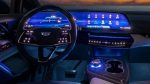 The center console of the Optiq, reminiscent of the Lyriq’s, features a rotary gear selector and twin cupholders. However, in the Optiq, the console has been elevated to create a floating effect, adding a touch of modernity to the interior. Complementing this are slim air vents and physical climate controls, along with an open storage bin illuminated by ambient lighting.