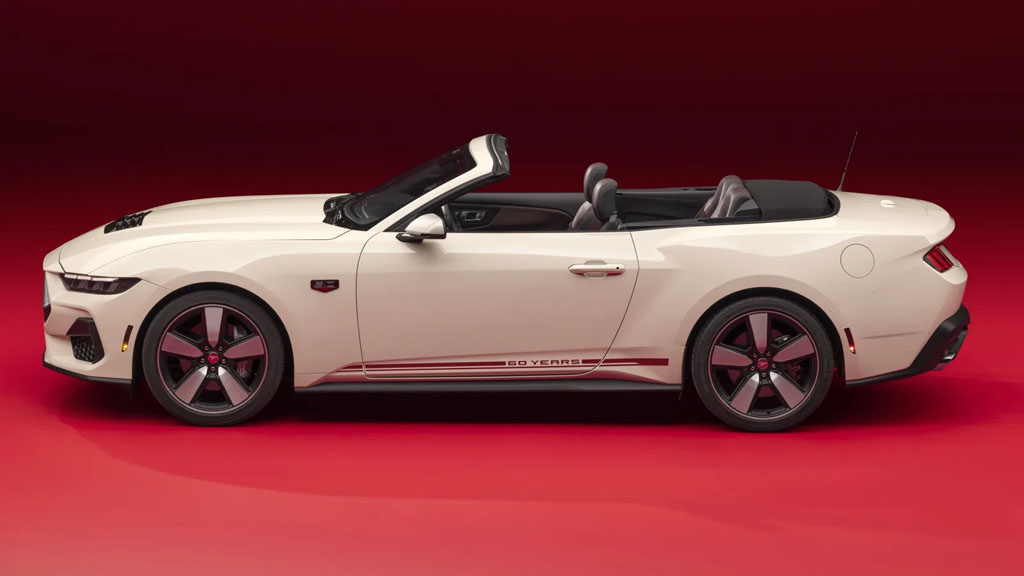 Modern interpretations of classic ‘cloisonné’ badging adorn the fenders and trunk lid, offering a subtle nod to the Mustang’s roots. Customers can further customize their ride with optional side graphics inspired by the original rocker panel stripes, available in Iconic Silver or Vermillion Red. Inside, the dashboard proudly displays a serialized ’60th Anniversary’ badge, underscoring the exclusivity of this special edition.