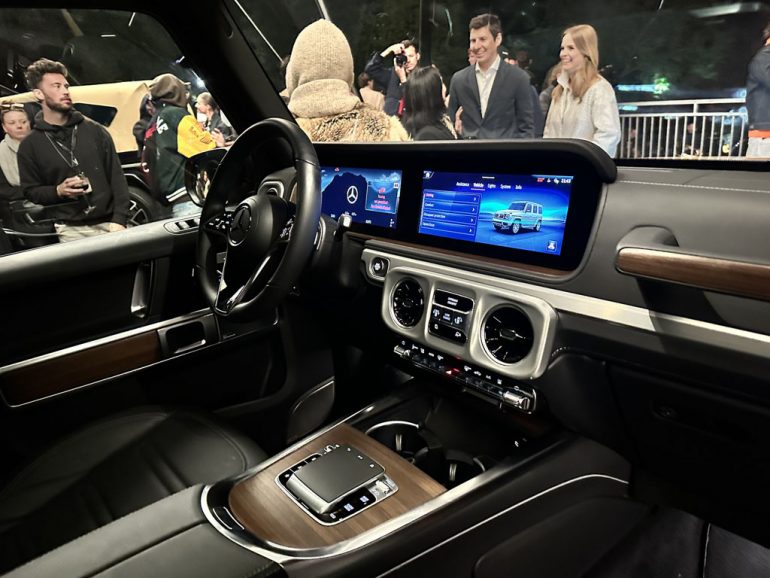 Taking its name from Geländewagen, meaning off-road vehicle, the luxurious SUV is nicknamed G-Wagen. It can be seen and heard in popular music videos and hip-hop songs and prominently on the streets of every major city. In fact, near the Mercedes-Benz host hotel — EDITION West Hollywood — where VIP guests and media resided, I counted over 40 G-Wagens touring the trendy neighborhood. Thus, LA was the perfect epicenter to host and launch the electric G-Class since it is EV-friendly and already boasts a strong following. Passionate owners looking to upgrade to the more earth-conscious EV will enjoy the current G 580’s advanced technologies such as G-TURN to maneuver more effectively, G-STEERING when driving off-road, and G-ROAR, which generates digitized sounds for the muscular and rugged all-terrain utility.
