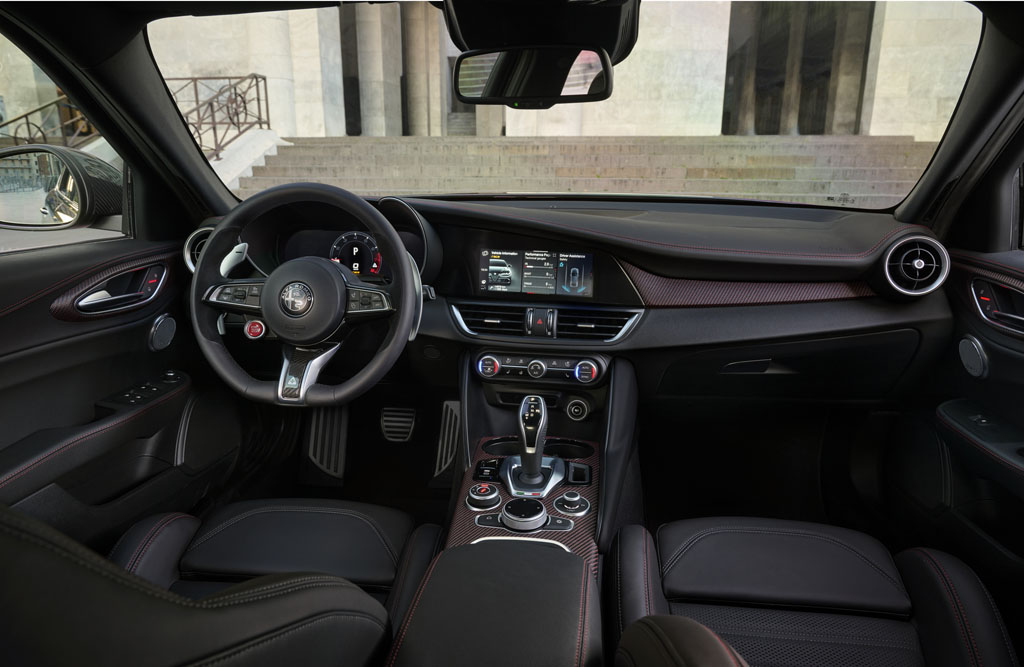However, the real highlight lies within the cabin, where red carbon fiber accents adorn the dashboard, center console, and door cards, creating a visually stunning 3D effect. These accents are complemented by red stitching on the seats, adding to the overall premium feel of the interior. Production of these special editions is limited, with only 275 examples of the Giulia and 175 units of the Stelvio being made available globally, including for the US market.
