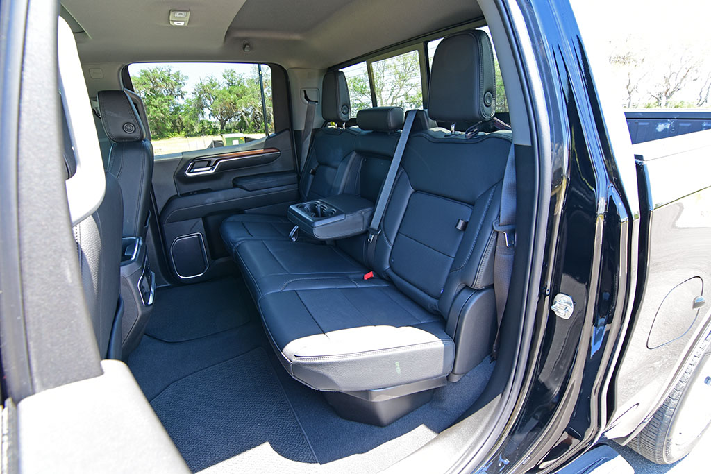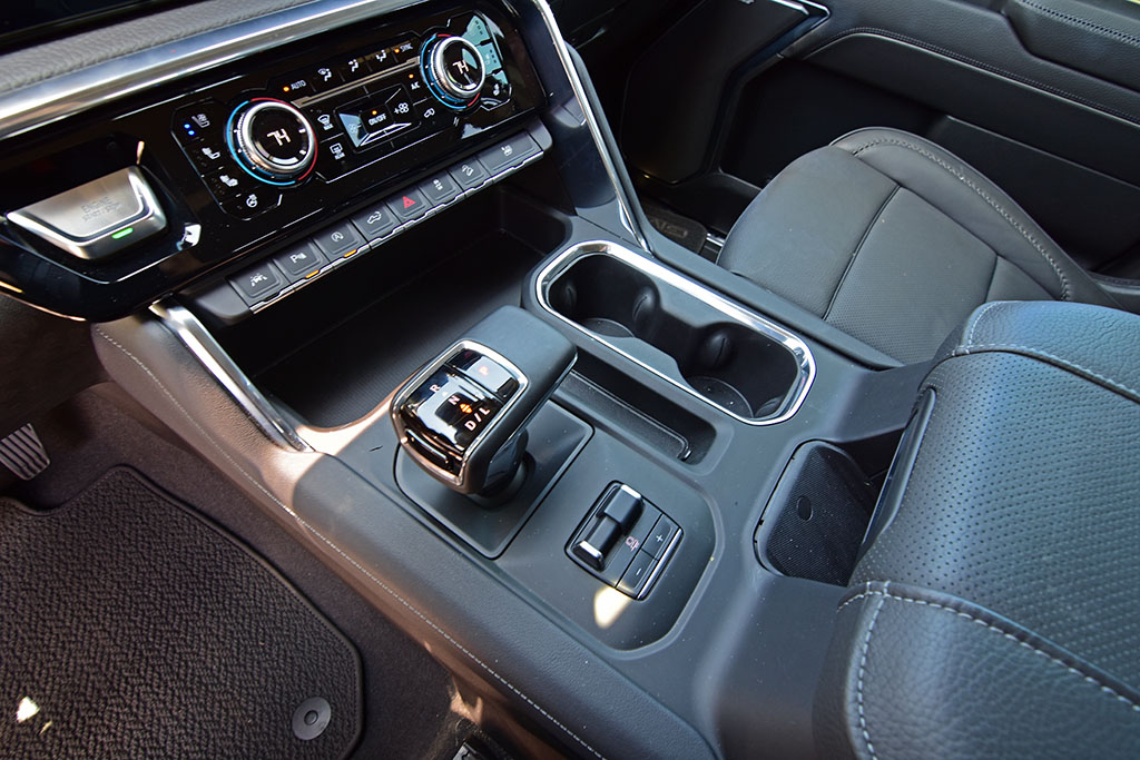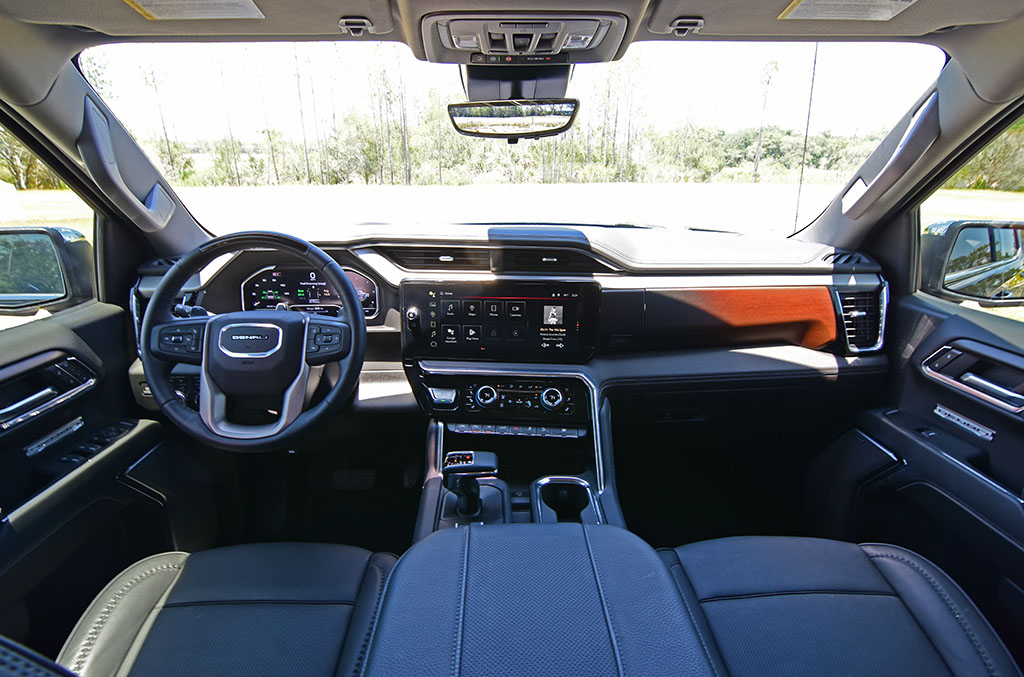 There’s a welcomed simplistic functionality in the GMC 1500 Sierra Denali with a decently laid out interior. The seating positions provide plentiful space and comfort with heated and ventilated front leather seats and heated rear outboard seats. The latest infotainment system fed through a large 13.4-inch touchscreen is user-friendly and nicely integrates wireless (and USB-connected) Apple CarPlay and Android Auto, along with having an actively cooled wireless smartphone charging pad.