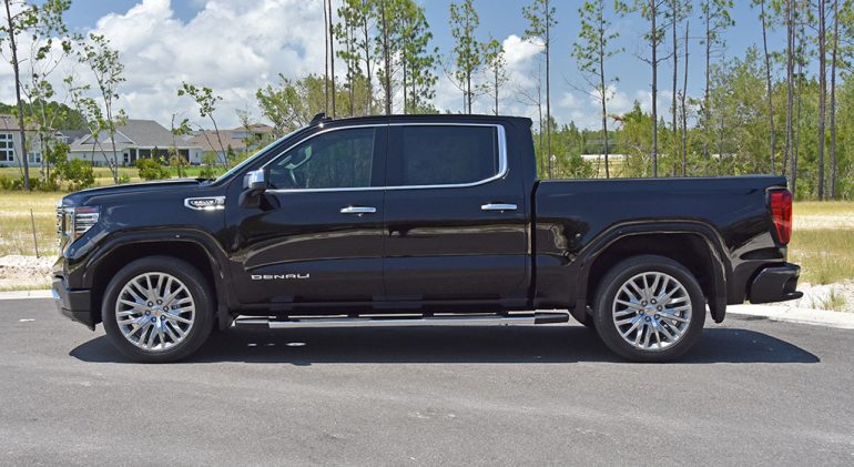 GMC Denali trucks come with a hefty price tag. My Sierra 1500 Denali test vehicle, priced at $87,385, is quite an investment. However, in today’s landscape of inflation the pricing may not be far from competitors considering the truck’s capabilities, advanced tech, and useful equipment packed into this comfortable and luxurious pickup truck. If you opt for a lower trim level, you can get a well-equipped Sierra 1500 SLT Crew Cab for around $59,000, which includes some desirable features and the less powerful (355 hp/385 lb-ft torque) 5.3-liter V8 engine, or the SLE trim with a decent 310-horsepower/430 lb-ft of torque 2.7-liter turbo 4-cylinder starting at $53,495 before any fees or options.