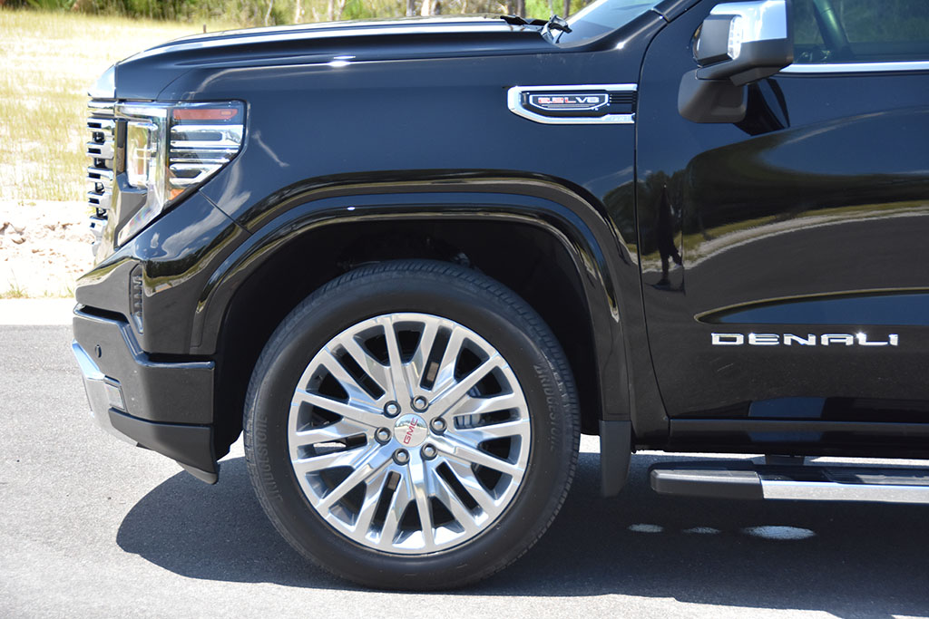 On the road the GMC 1500 Sierra Denali is most of what I remember of years past in it being more compliant and smoother than ever before. There’s still the inherent body jiggles going over rough road imperfections but the unwanted movements are kept to a minimum. The adaptive dampers do a good job to help soak up bumps as you roll over them with the large 22-inch polished aluminum wheels wrapped in all-season Bridgestone Alenza rubber.