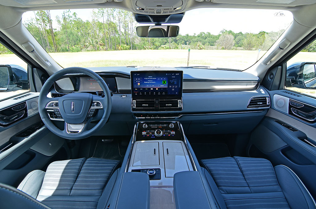 There’s a lot of thought put into the accommodations inside the new Lincoln Navigator, from the power-adjustable gas and brake pedals to the power-folding third and second-row seat backs and power-retracting running boards. The advancements of technology go the distance to bring the Navigator the latest version of the brand’s BlueCruise hands-free driving system that appears to be more adaptable than I remember in older iterations. Here, the system feels more relaxed and proactive in its actions and takes advantage of additional mapped roads to enable the system. You get all the expected active safety features, which some embed into the BlueCruise system, in addition to having a high-resolution 360-degree surround camera system.