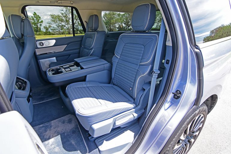 Being the Black Label trim, the Lincoln Navigator receives all the luxury goodies, which include the highlight of having ventilated, heated, and massaging front and second-row seats. The seats prove to be somewhat complex, but after taking the necessary time to make proper adjustments in the 30-way perfection position in front seats, there’s a comfy position to be had. The rarity of having a second row of seats with massaging is a plus, as is having ample space to stretch out and relax in the lap of luxury.